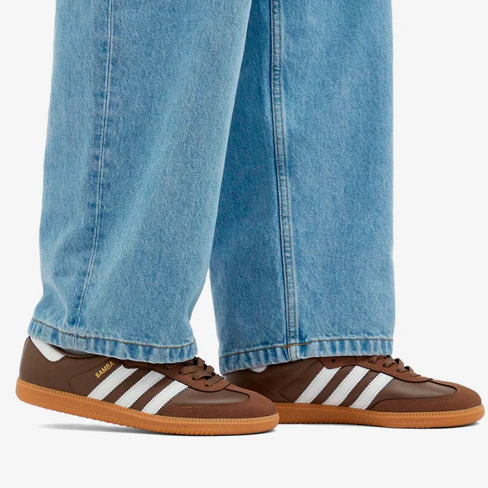 The SAMBA OG "Earth Strata Gum" embraces a grounded, earthy aesthetic with its deep brown base and crisp white stripes. The color palette evokes natural textures and warmth, while the gum-colored sole enhances its classic appeal. Subtle gold branding and a contrasting white heel tab bring a refined balance to this everyday essential.